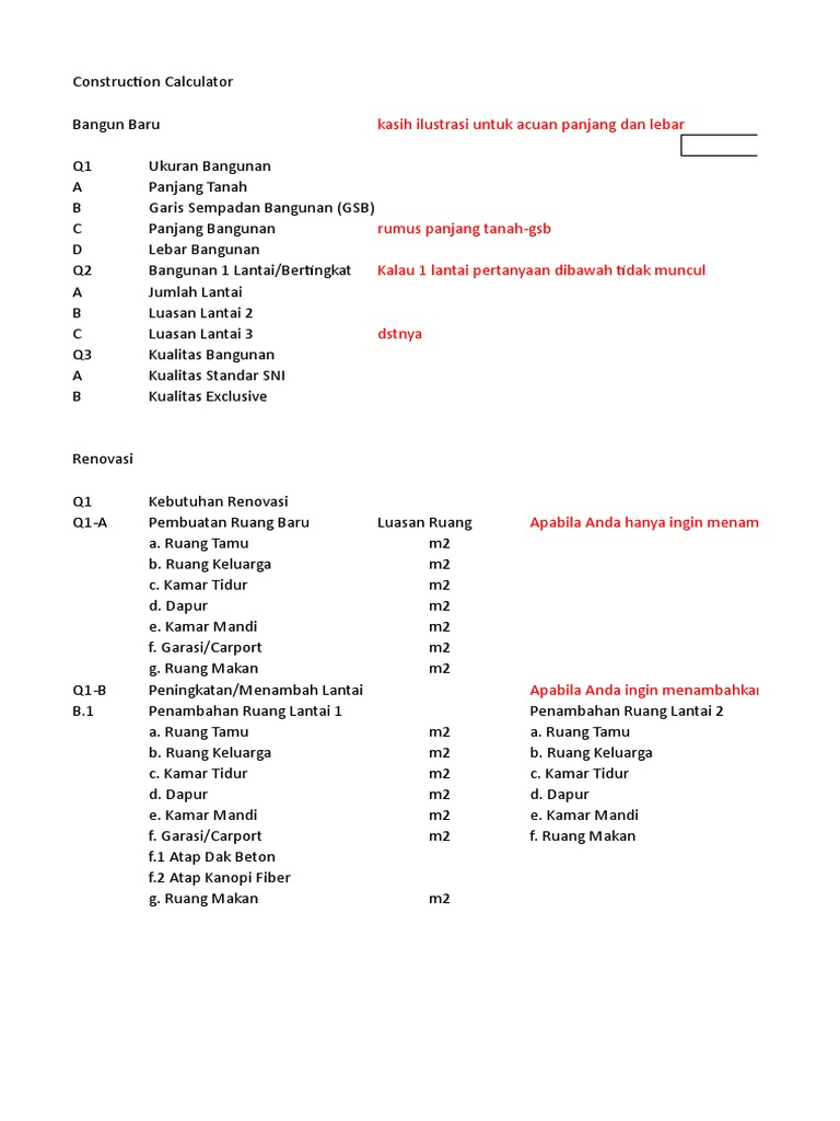 Kalkulator Renovasi Bangun Rumah Sejasa 2 Sumber : www.scribd.com